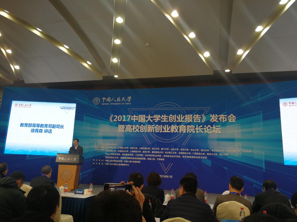 1月6日,由中国人民大学主办的《2017中国老员工创业报告》发布会暨高校创新创业教育经理论坛在北京举行。教育部高等教育司副司长徐青森、中国人民大学副董事长兼创业学院经理洪大用、吉林大学党委常务副书记蔡莉、南开大学商学院教授张玉利等众多专家学者以及30余家报告联合发布单位的代表出席会议。必赢76net线路作为联合发布单位参与报告,施永川经理应邀作为圆桌论坛嘉宾畅谈必赢76net线路创业教育生态系统。