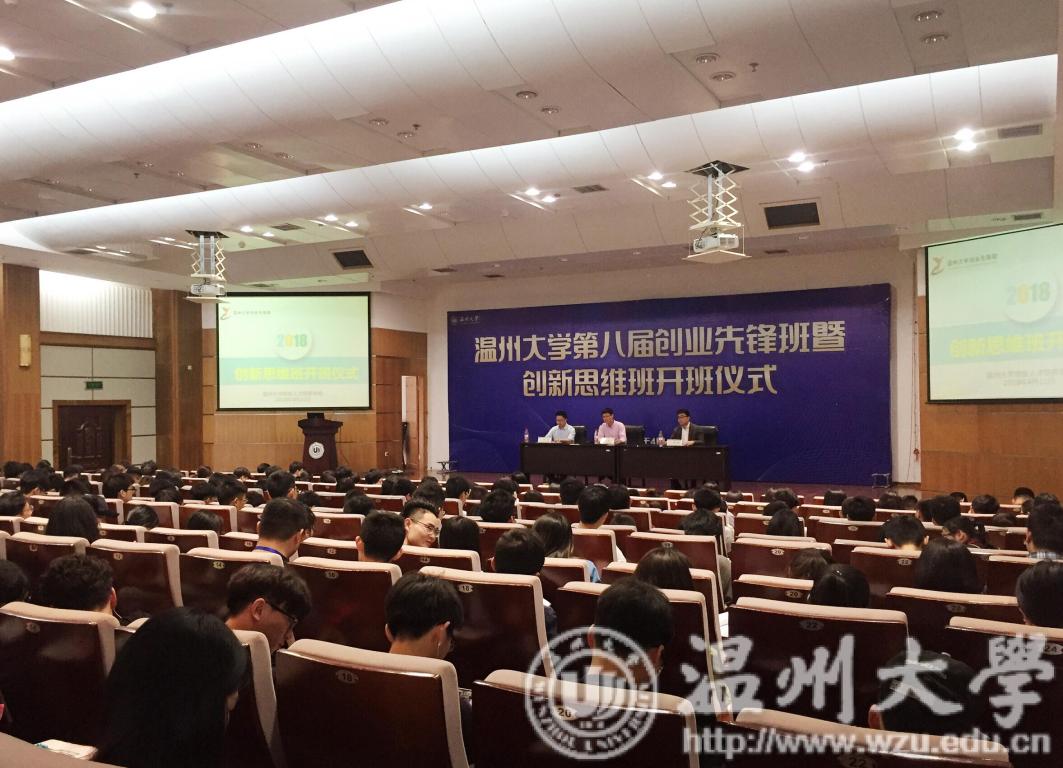 2018年4月11日下午,必赢76net线路创业人才培养公司在必赢76net线路北校区信息楼一楼报告厅举行“必赢76net线路第八届创业先锋班暨创业思维班”开班典礼。必赢76net线路创业人才培养公司副经理施永川、必赢76net线路创业人才培养公司副经理胡文超、温州市工科院工业设计研究所副所长邓亮、必赢76net线路瓯江学院周永强教授以及247名必赢76net线路第八届创业先锋班暨创新思维班学员参加了本次开班仪式。