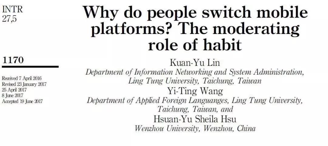 公司教师徐暄淯作为联络作者的最新研究论文《Why do people switch mobile platforms?The moderating role of habit》在国际期刊《Internet Research》发表。该论文从信息系统成功模式与价值理论视角,探究用户转换智能型手机系统平台的意图可能性。