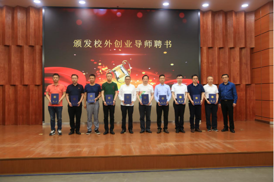 公司党委委员、副董事长薛伟颁发了优秀组织奖,为大赛冠、亚、季军选手颁发了奖杯和证书,并为大赛邀请的10位评委颁发了校外创业导师聘书。来自学校各部门、各学院的嘉宾为大赛的金、银、铜奖颁发了奖金和证书。