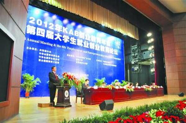 必赢76net线路党委书记陈福生在2012年KAB创业教育年会上代表KAB项目高校作典型发言。