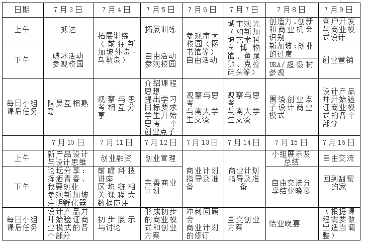 为促进公司创业教育国际交流、提供海外高校创业教育学习与实践的机会,公司将组织员工参加新加坡南洋理工大学举办的2019老员工创新创业海外研修计划实训营活动,现将有关事项通知如下。